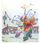 婴戏纹 所谓婴戏,即以婴儿为画面的主角,描写儿童钓鱼、玩鸟,蹴球、赶鸭、放鹌鹑、抽陀螺、攀树折花等种种活动,着墨不多而情趣盎然。