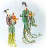 仕女图 仕女图在五彩瓷器上比较常见,有游园的,执扇的,乘凉的,戏婴的,也有在器物上突出画一个仕女。飘逸凌云,形象优美,画笔传神,栩栩如生。