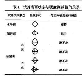 显微镜调焦不当 硬度值测不准 压头零位调高,测得的压痕对角线偏短,硬度值偏高,否则压痕对角线偏长,硬度值偏低