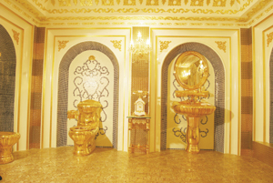 “VIEANY”巴洛克系列中最具代表性的就是“浮士宫”整套的纯金洁具,它的表面均是以18K纯金烧制而成的,它承袭了欧洲克里特文明时期最奢华的米洛斯迷宫中金厕所的艺术风格,华丽而高贵的黄金淋漓尽致的展现着它无与伦比的内在气质,在它身上,人们仿佛可以看到权贵与奢华碰撞的火花,而此时,黄金却缔造着永恒,所有的一切都迸发了更蓬勃的生命力。