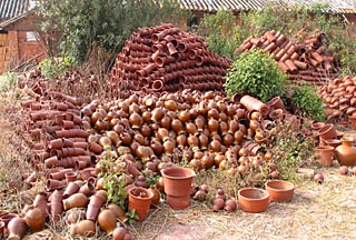 在云南省建水县工艺美术陶厂的厂区里,一些制作好的紫陶器具随意堆放着。本报记者 李倩 摄