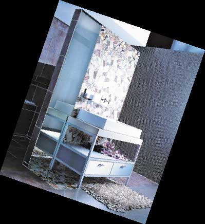 对于一些人来说,如果仅仅是一面墙,一定觉得无聊至极。即便是蓝色或者黄色,时间久了依然会感觉厌倦。连落地镜和拉丝铝浴室家具都闪着光芒跃跃欲试,那么,为什么不用最大胆的POP花色瓷砖拼贴整面墙壁冲击视觉神经呢?这款浴室主题墙既可想象成光芒四射的Dancing Ball人气舞台,又可想象成旋律抑扬充满节奏感的New Jazz音乐,"未被定义的保持了莫可名状的美"Judith Herzberg朱迪赫茨勃一语道出内中玄机。对于这类人来说,只有冲破藩篱的创意激情才是生存的真谛。