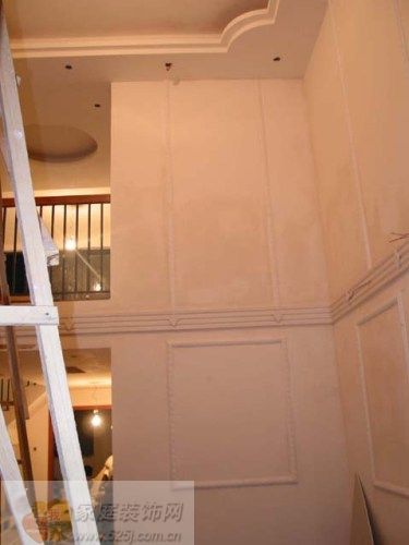 客厅选用石膏线进行建筑装潢,舍去了用木料装饰的想法,节约了木材并且降低了成本。