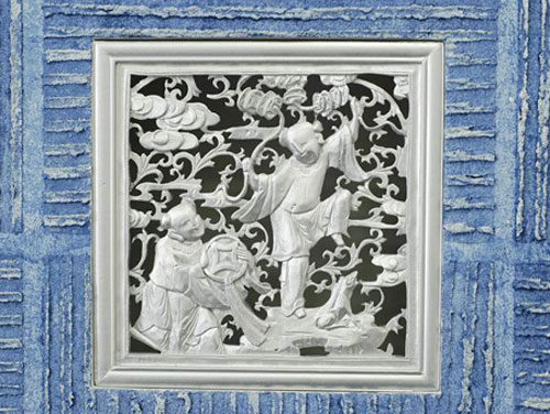 客厅为了突显个现代化的中式复古感,业主把细节处考虑的很周到,这个是客厅背景花板,买来是那种红木色的,后来是用油漆喷成银色的了,装修效果还不错,既有个性又有复古的味道。