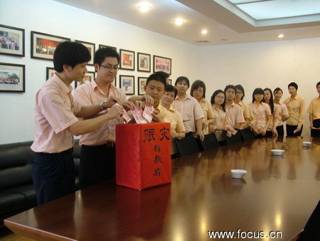 5月13日,英皇卫浴公司董事总经理梁慧枝女士得知四川的灾情之后,发动全体员工掀起了一场“赈灾捐款支援四川同胞”的募捐活动,并带头募捐了5000元。在梁慧枝女士的带领下,英皇卫浴公司总部的员工纷纷慷慨解囊,截至15日中午,英皇卫浴员工的捐款金额已经达到3万元。