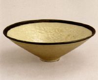 说 明: 胎体轻薄透光.通体施釉覆烧,釉呈牙黄色,釉质莹润.