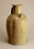 说 明: 灰色胎,施淡青色釉。从该壶的造型与装饰看,应为晚唐作品。