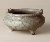 说 明: 胎白色,通体施粉青色釉。器内外布冰裂纹。
