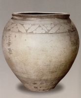 说 明: 缸胎粗砂体,胎质硬度略差,施釉牙白,光泽柔润。