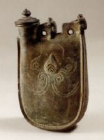 图片名称: 绿釉划花帖塑火珠、双孩鸡冠壶