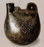 说 明: 壶身满挂绿釉,壶体仿皮囊形,上圆下扁.
