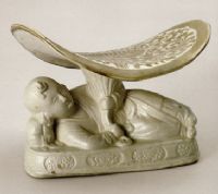 图片名称: 定窑白釉铜子擎荷赭彩雕划牡丹纹枕