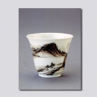 首都博物馆藏。敞口,深腹,圈足。外壁以墨彩绘山水人物图,杯心为墨彩山水。外底书青花“大清雍正年制”6字3行楷书款。