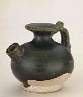 此壶造型小巧圆润,具有巩义窑器物的典型特征。此窑还生产这种造型的茶叶末釉、白釉、黑釉小壶。