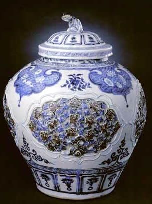 青花釉里红瓷器创烧于元代。青花的呈色剂是氧化钴,呈色稳定;釉里红的呈色剂是氧化铜,极易挥发,对窑室的烧成气氛要求十分严格。元代景德镇工匠创造性地将二者珠联璧合地施于同一器物上。这一新的釉下彩品种的出现,是元代瓷器生产技术进步的重要标志。