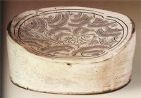 图片名称: 磁州窑白釉划花水波游鱼枕