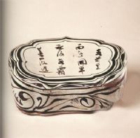 图片名称: 磁州窑白地黑花如意头开诗文枕