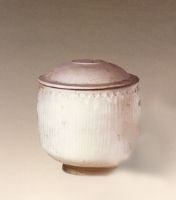 白釉盖钵,敞口直壁,圈足。盖面隆起为镶入式。通体施白釉,外壁剔刻出繁密的菊瓣纹。此钵造型端庄古朴,纹饰繁密又自然流畅,是一种不可多得的白釉器。