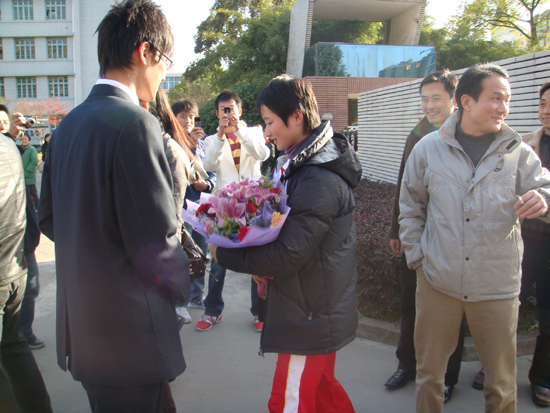 陶瓷学院学生代表向吴静钰敬献鲜花