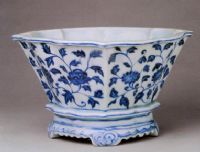 图片名称: 青花缠枝花卉纹菱花式花盆