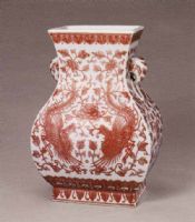 图片名称: 釉里红穿花凤纹象耳方瓶