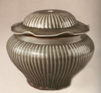 图片名称: 龙泉窑青釉条纹荷叶盖罐