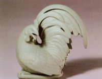 薰为雄鸡形,作俯状回首状,底部可拆出,通体施粉青釉.