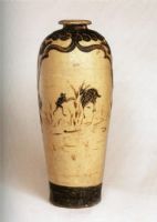 图片名称: 磁州窑白釉黑花猴鹿纹瓶