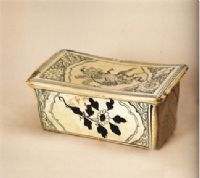 图片名称: 磁州窑白釉黑彩狮球枕