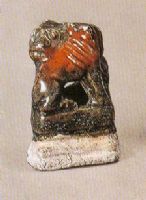 三件虎皆为模制成型,菱形底座,器内中空,除此,其制作和胎釉亦尽相同。造型上可分为两组,其中一件,取两幼虎戏闹之态,两者交劲扭躯,相向而动,雕塑上虽然较抽象概括,但憨态可掬,情趣盎然。