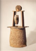 质地为细砂灰陶,轮制,火候不高,包括井体和汲水井架两部份。井口围以方形平臺,并设四柱汲水架。