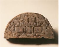 泥质灰陶。半圆形,瓦當正面模印一个饕餮纹图案。制作精致,形象生动。