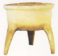 泥質紅陶。盤口,直腹,扁足,腹部饰方格纹。