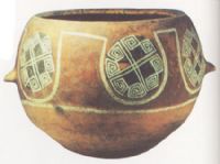 器為夾砂紅陶所制,並施有红色陶衣,壓磨光滑。腹上部用白彩繪几字叙一周,相同排列黑地白彩雷形幾何纹,布局疏密相宜,線條粗獷有力。