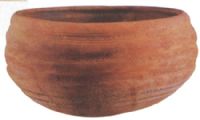 夾砂红陶。斂口,圆唇,圆腹,圜底。施紅色陶衣。腹部刻平行凹弦紋數道,每道弦纹内刻劃三角纹及两组櫛紋。