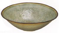 敞口,斜直壁,矮圈足。碗内印荷花蓮纹樣。通體施影青釉,晶瑩剔透。口為芒口,並用铜镶装器口。所謂“芒口"是指採用覆烧法烧造的瓷器,又稱“芒口瓷”。景德镇湖田窰就曾大规模生產芒口瓷。