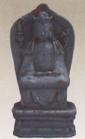 觀音跌坐於须彌座上,背後有扇形開光,颈戴寶冠,身披袈裟袒胸,體態端正,面容清秀,直鼻小口,雙目微合,形貌慈祥。通體施影青釉,釉色熒潤,胎厚質堅,觀音形象给人以端莊凈潔之感。瓷觀音最早見於北宋時期。此件屬景德镇窰之作。