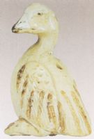 鹅塑成坐状,身直立,頭平向左右瞭望,白釉褐彩,形象生動。此器為吉州窰典型像生瓷。惟鵝右腳蹼殘,釉色稍欠。