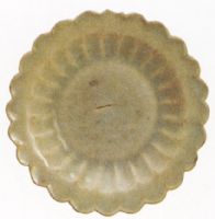 碟呈菊瓣形花口,浅腹,平底。通體施影青釉,積釉處為浅湖綠色,釉質瑩縝温润,釉面光滑,玻璃質感强,具有玉質感。胎體薄轻,赞地潔白。