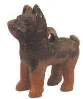 中國漢朝盛行以氧化鉛為主要熔剂的低温色釉。釉色大體有黄、绿、褐色三種。其中尤以绿釉最為突出。此器色澤艷麗,神態生動,是漢代典型的陶塑藝術品。