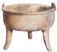 此鼎造型古樸,挺拔,器表打磨光亮,與铜器十分相像,惟掂重量方知為陶器。春秋晚期至戰國,陶器製作流行仿制青铜器的造型和紋饰。