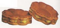 胎呈紅色。器失蓋,現釉兩層,可以相套合。器呈八瓣蓮花形,外壁印有淺浮雕牡丹花紋,施三彩釉。