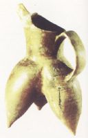 白陶,白色素面。侈口带流,短颈,宽扁状鋬,三大袋足。器型规整,形制奇特,做工精细。此器為泥質白陶,但因白陶器稀少,雖殘破修復,仍有重要研究價值。