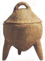 黄褐色夾砂陶。斂口,腹略鼓,附圆锥状高足。盖呈斗笠状。器腹、盖饰有數组條堆纹。北辛文化是黄河下游地區新石器時代早期文化,制陶技衍是较為原始的手工製作,装饰技法簡潔,反映了早期陶器的特徵。