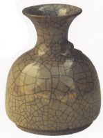 喇叭形口,短颈,垂腹,圈足。圈足内有“大清雍正年製”雙行篆書雙圈款。器身施釉為仿宋代哥窑釉。冰裂纹,肩部堆贴繩索紋。