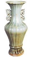 多棱雙耳是元代瓷器装饰特徵。此瓶造型秀麗,釉色晶润,在元代青白瓷中少見,乃属精品。惟足邊露胎美中不足。