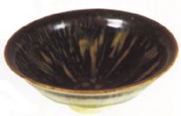 敞口,斜壁,矮圈足。胎質粗鬆,胎色灰白。内外施黑釉,外壁施釉不到底,器足露胎,釉釉質肥厚,釉面光潤,黑釉上饰以酱色斑塊或酱色條状紋,黑酱雨種釉色和谐自然,惹人喜爱。
