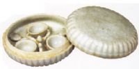 器呈菊瓣形,蓋面印缠枝花,內底分置三個粉碟,並用花枝相連,碟內可裝粉、黛、硃等化妝品。◆瓷盒在唐代已出  、现,主要用於盛藥品、香料和婦女化妆品,南宋畴各地瓷窑幾乎無不烧造。