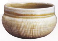 直口,鼓腹,圜形底,腹外壁刻劃竖線纹,造型猶如笆斗,颇新颖别致。胎壁较薄,赞地坚硬。青白釉色泛黄,釉面光润。此鉢雖形體獨特,但裝飾簡單,且器形較小。