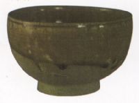 斂口,深腹,圜底,内底有三個支钉,饼足。灰白胎,施青釉,外壁施釉不到底,